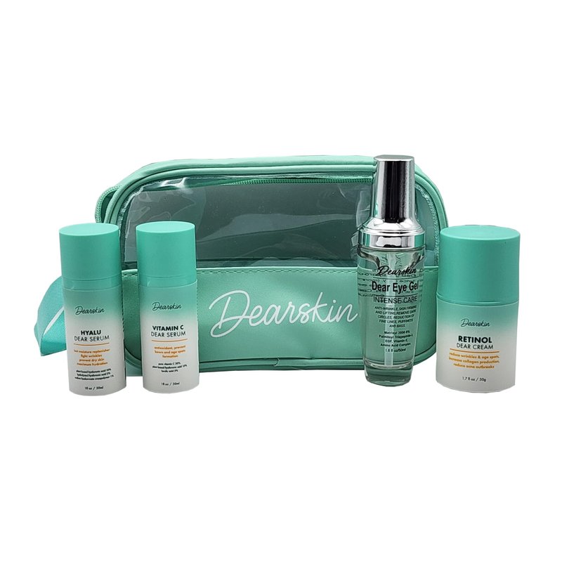 Elevate your loved one's self-care journey with the Dearskin Anti-Aging Skincare Gift Set. Unveil timeless beauty through a comprehensive routine featuring Hyalu Dear Serum, Vitamin C Dear Serum, Dear Eye Gel, and Retinol Dear Cream.