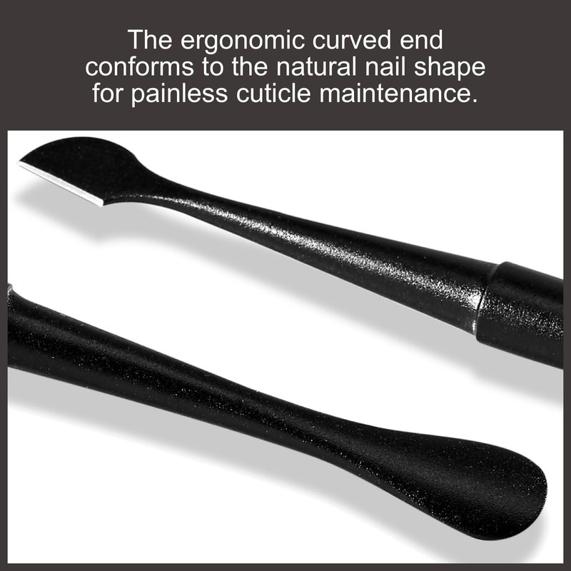 - EASY NAIL MAINTENANCE: This professional Cuticle Pusher has an ergonomic curved end that conforms to the natural nail shape for painless cuticle maintenance.