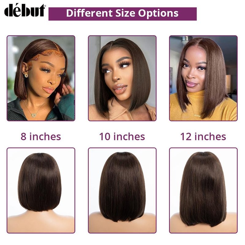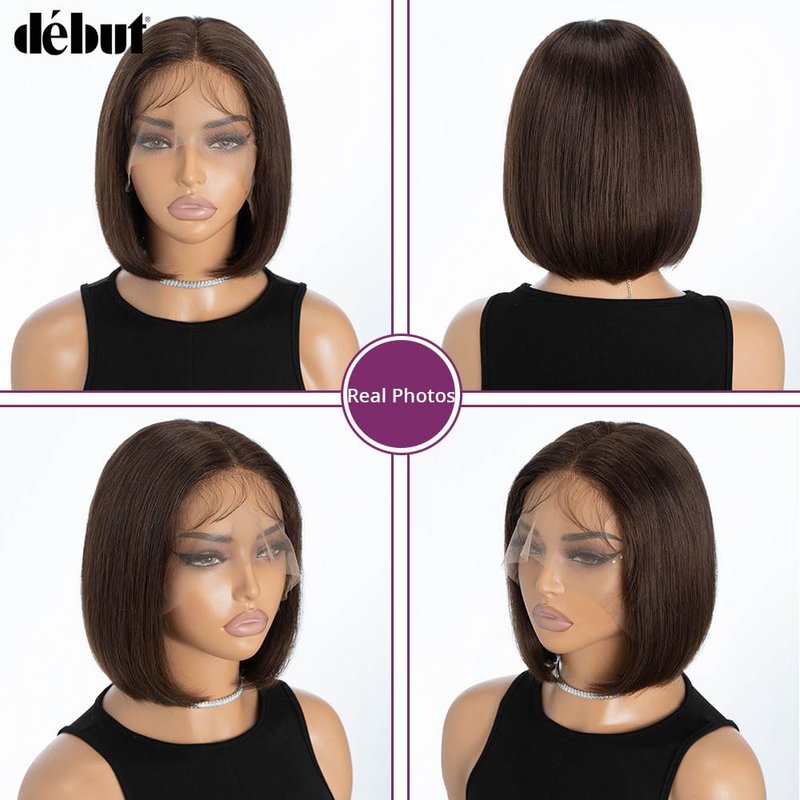 DÉBUT Chocolate Brown Lace Front Wigs 4x4 HD Lace Closure Wigs Human Hair Short Bob Wigs for Women Pre Plucked 13inch Lace Front Natural Hairline with Baby Hair 8 Inches
