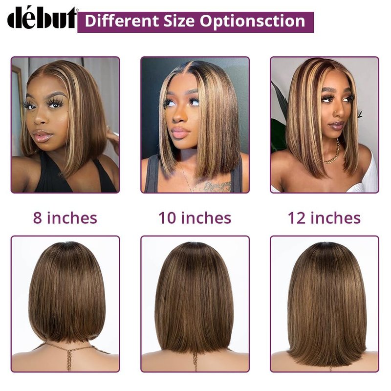 - 💗【MULTIPLE COLORS AVAILABLE】💗DÉBUT bob human hair wigs offered wine red, brown, ombre 1b to brown, ombre 1b to wine red, highlight ombre blonde brown, and natural color. If you want to try colored wig and don't want to spend time and money to dye, then these colored wig will be perfect.