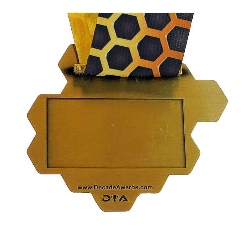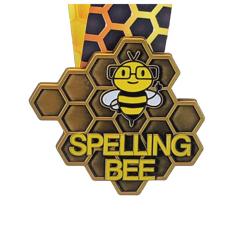 Introducing the new Decade Awards Spelling Bee Medal in Gold! This new medal is available in Gold, Silver and Bronze for the winners of your next Academic competition! This solid, die cast medal is 3.25” wide and features a textured honeycomb pattern IN the medal. Our colorful neck band features a negative image of the yellow/black honeycomb pattern on the other side.