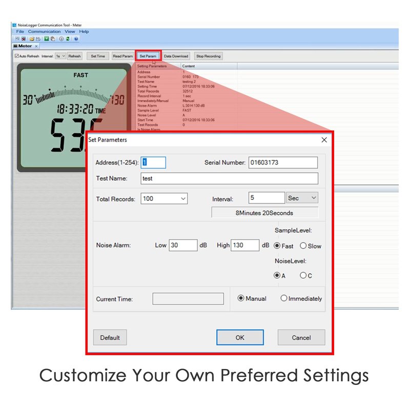 - 【Decibel Data Logger】The digital decibel meter can record 32000 groups data, the data logging function is compatible with Windows 10, 8, 7, Vista and XP.