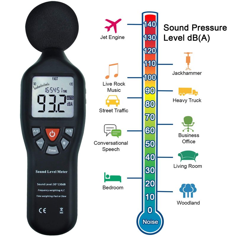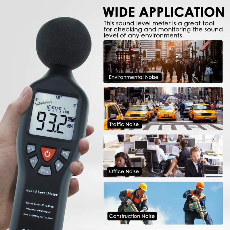 - 🔊WIDE APPLICATIONS : This sound level meter is a great tool for checking, monitoring or controlling the sound level of any environments. It is widely applicable for personal, families, business, studies, industrial and etc.