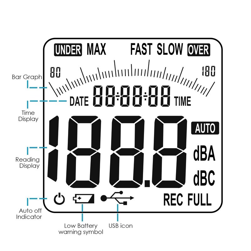 - 🔊ACCURATE MEASUREMENT : Noise measurement range from 30 - 130dBA, Accuracy: +1.5dB(reference sound pressure standard,94dB@1KHz), Frequency response: 31.5~8.5KHz, Record Interval: 1~60 sec / 1~60 min / 1~24 hrs.