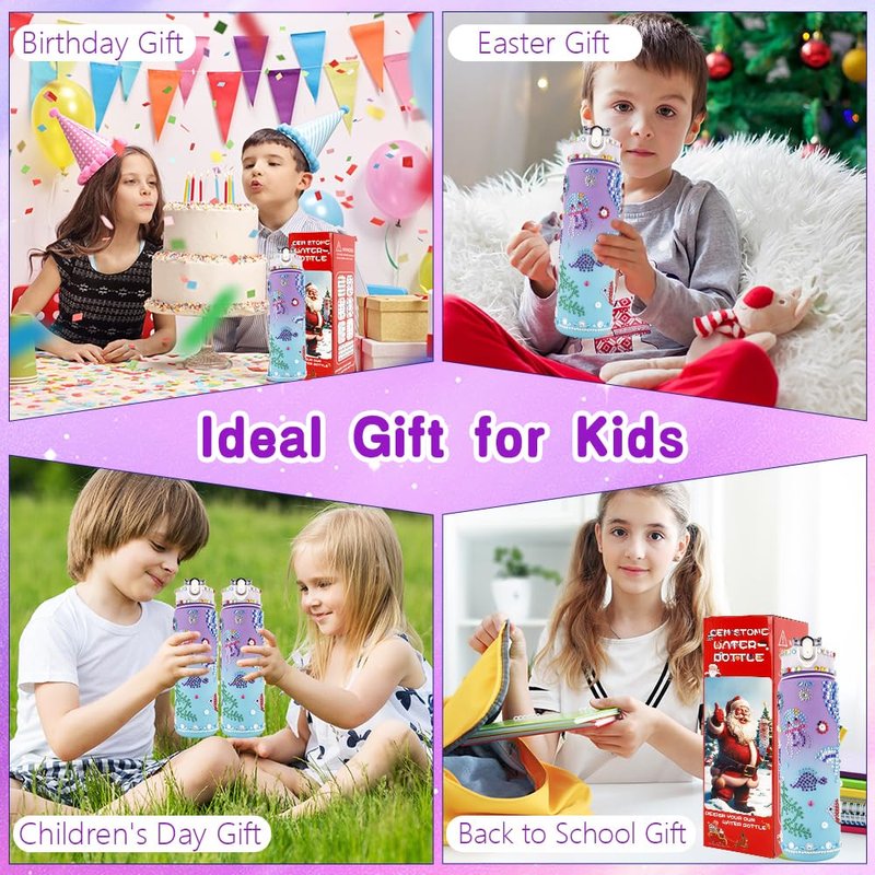 - Ideal Gift: The lightweight gem art water bottle comes in a Christmas gift box, perfect as a Christmas gift and New Year's gift for 5 6 7 8 9 10 year old girls, or as a birthday gift for kids, which can exercise their hands-on ability, as well as stimulate their creativity and unleash their imagination