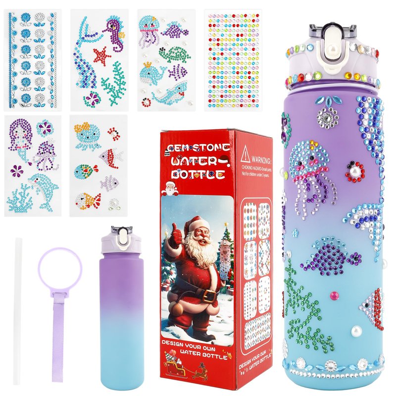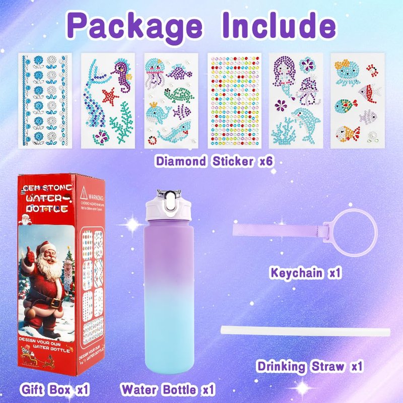 - Decorate Your Own Water Bottle: This water bottle gem craft kit inckuding 1 x 750ml water bottle, 6 rhinestone stickers, 1 grommet and 1 operation manual, 1 x Christmas gift box. This is a fun Christmas gift for 6-12 year old girls who love arts and crafts