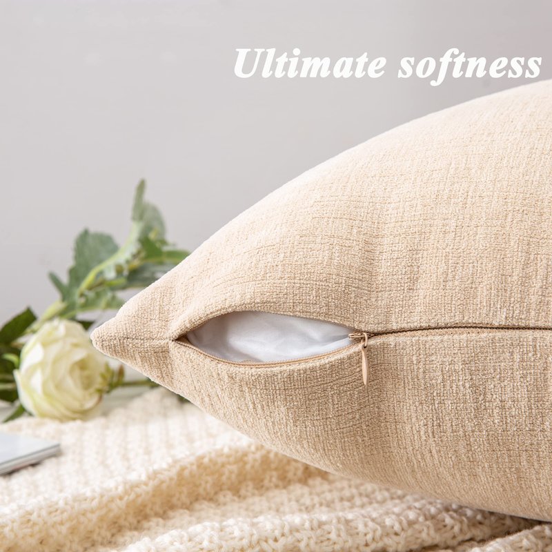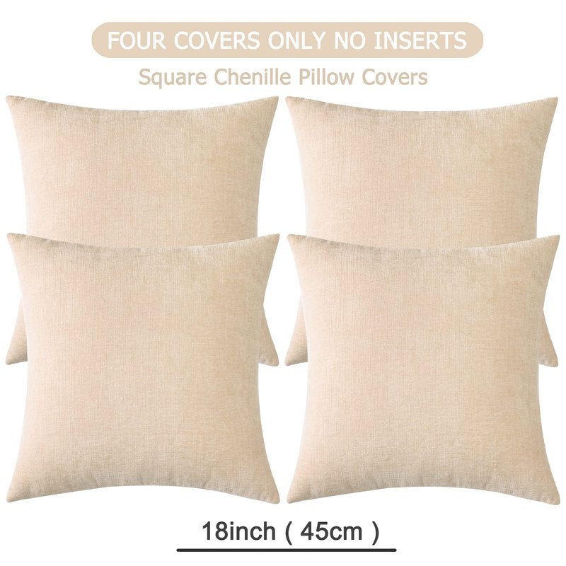 Decorative Square Throw Pillow Covers 18x18 Inch Set of 4,Farmhouse Fall Super Soft Chenille Pillows Cover for Living Room Bedroom Sofa Couch Cushion Cover Cojines Decorativos Para Sala Beige 45x45cm