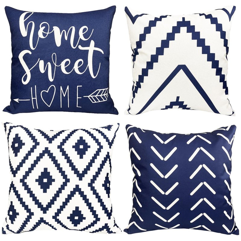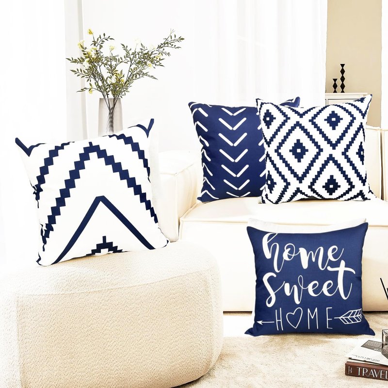 Decorative Throw Pillow Covers 18x18 Inch Blue Pillow Covers for Couch Sofa Living Room Bedroom car,Farmhouse Outdoor Throw Pillow Cover,Modern Geometric Linen Square Throw Pillow Case Set of 4