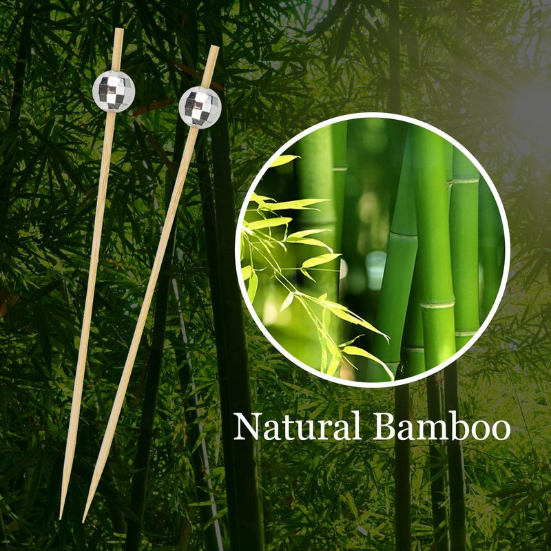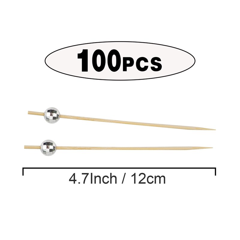DecorWoo 100 Pcs Cocktail Picks, Disco Ball Decorative Toothpicks for Appetizers, Silver Cocktail Skewers for Appetizers, Wooden Long Cocktail Picks Disco Theme for Party Supplies (4.7 Inch, Silver)
