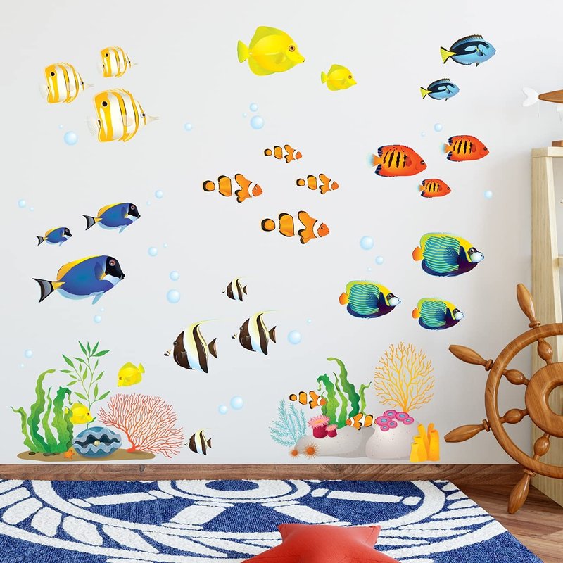 DECOWALL DWL-1811N Coral Reef Fish Kids Wall Stickers Wall Decals Peel and Stick Removable Wall Stickers for Kids Nursery Bedroom Living Room décor
