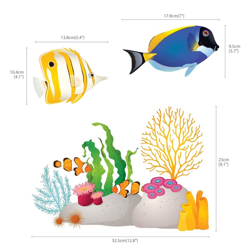 Create your own wall aquarium with this stunning set of fish and coral reefs wall stickers.