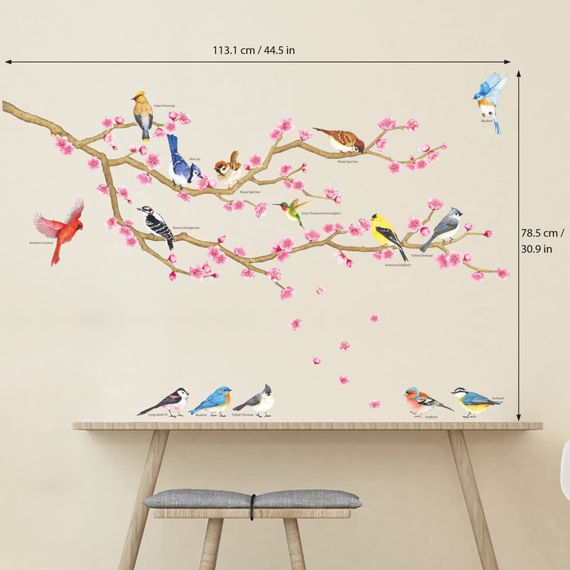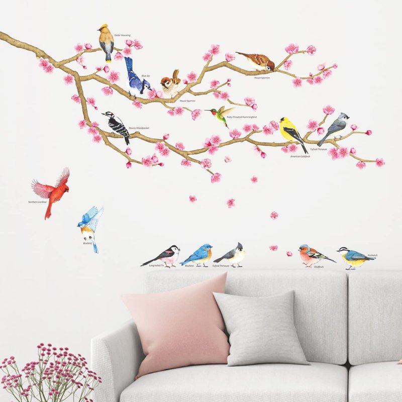 DECOWALL DWL-2009 Garden Birds and Cherry Blossom Wall Stickers Wall Decals Peel and Stick Removable Wall Stickers for Kids Nursery Bedroom Living Room d?cor