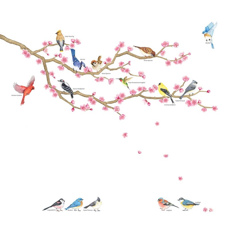 This high-quality set consists of cherry blossom tree branches and colourful birds in various shapes and positions.