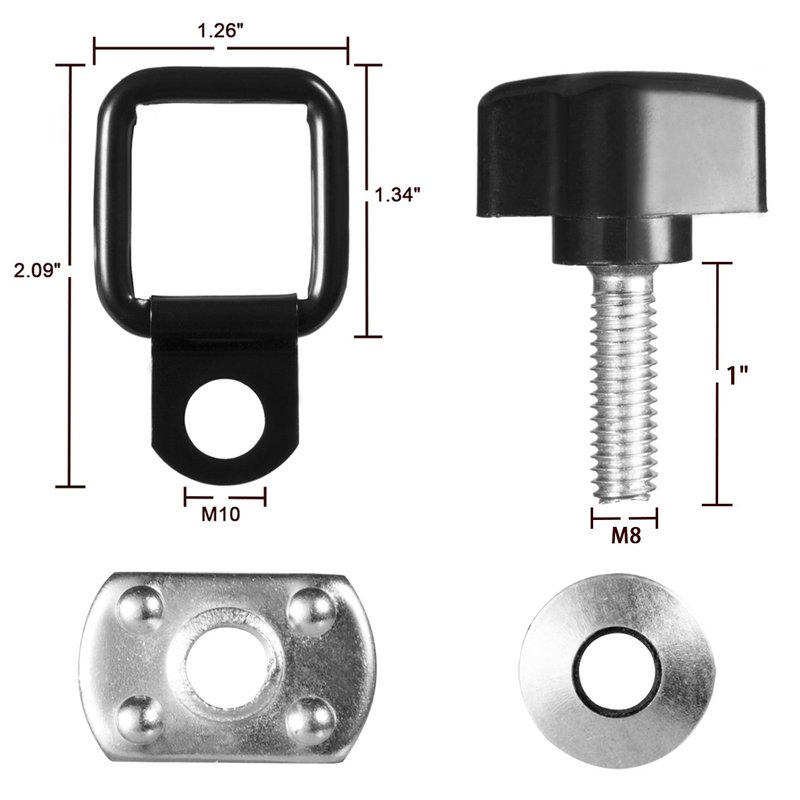 - 🎁PACKAGE INCLUDES: 8 x thumb screws, 8 x washers, 8 x nut plates and 8 pcs D-rings Anchor.(you only need 6 sets, 2 sets for EXTRA back up.) If you have any problem, please feel free to contact us.