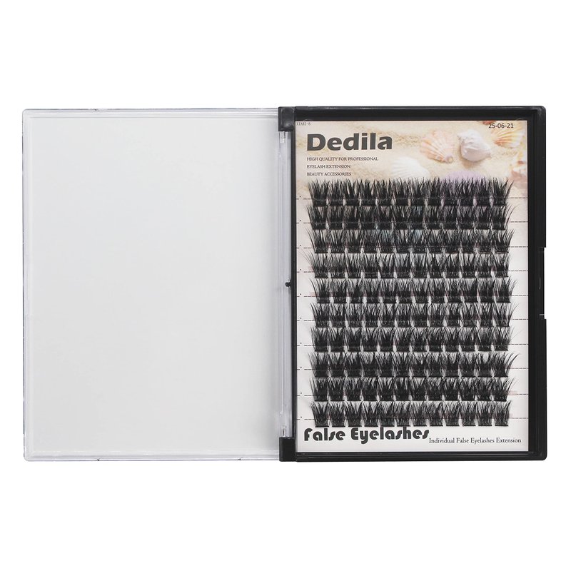 Dedila 120 Clusters Individual False Eyelashes Wide Stem D Curl Handmade Dramatic Black Soft and Light 5D Volume Eye Lashes Extensions Thick Base Women Girls Beauty Tools (16mm)