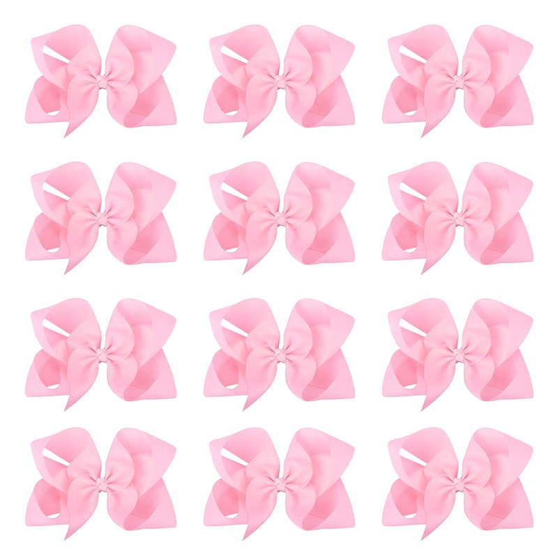 DEEKA 12 PCS 6" Big Hand-made Grosgrain Ribbon Hair Bow Alligator Clips Hair Accessories for Little Teen Toddler Girls - Light Pink