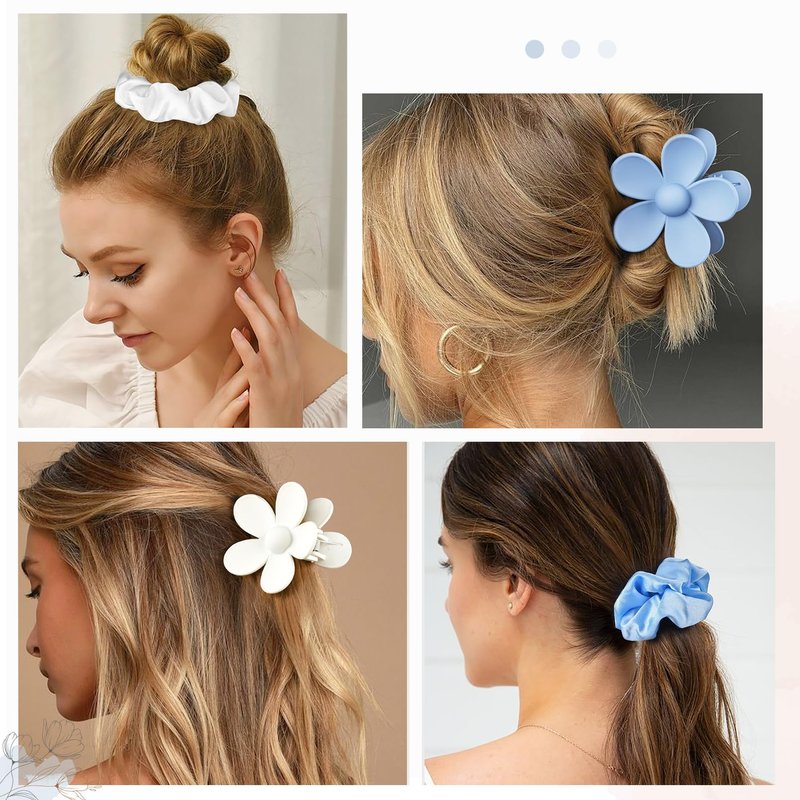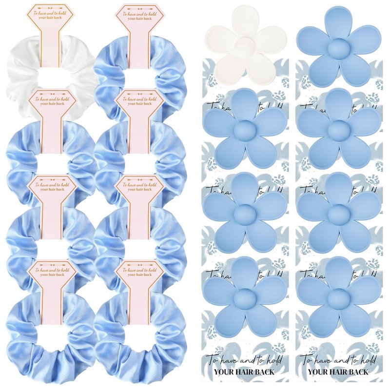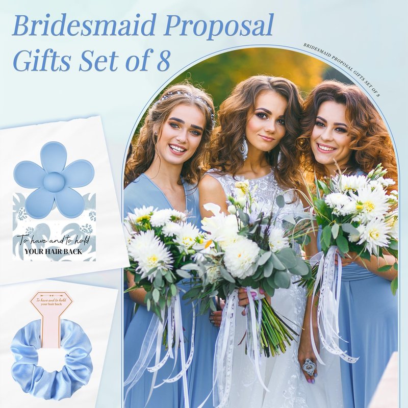 - Bridesmaid Gift Set of 8- Each set includes 8 beautifully crafted flower-shaped clips and 8 satin hair scrunchies, measuring approximately 2.8 inches in length and width. These clips and scrunchies come packaged with adorable paper cards, each featuring a 'to have & to hold your hair back' design, adding an extra touch of elegance to your bridesmaid gift boxes.