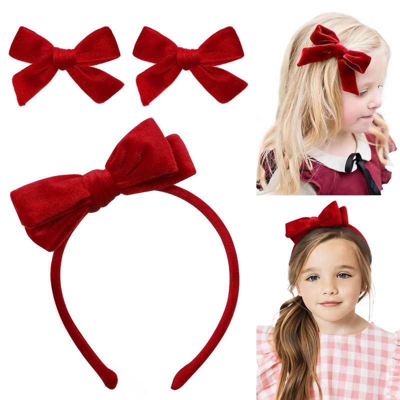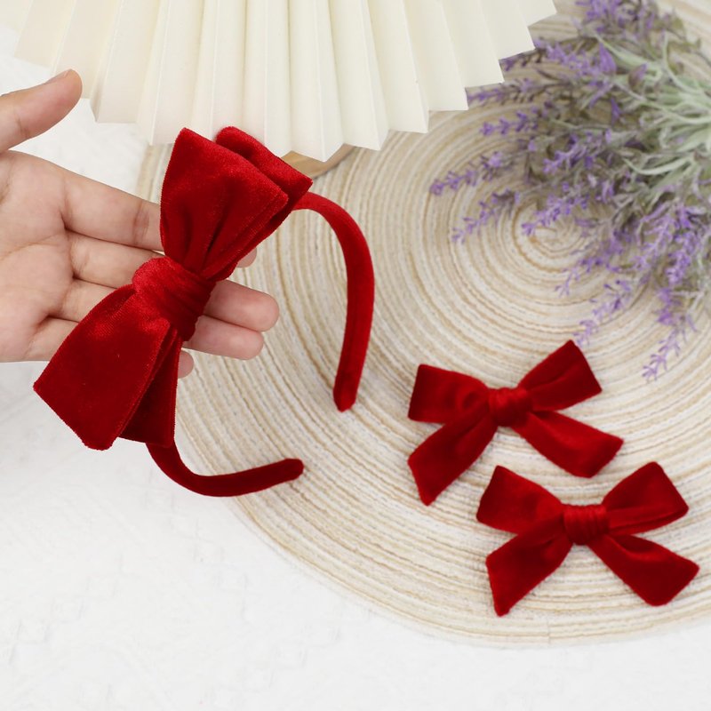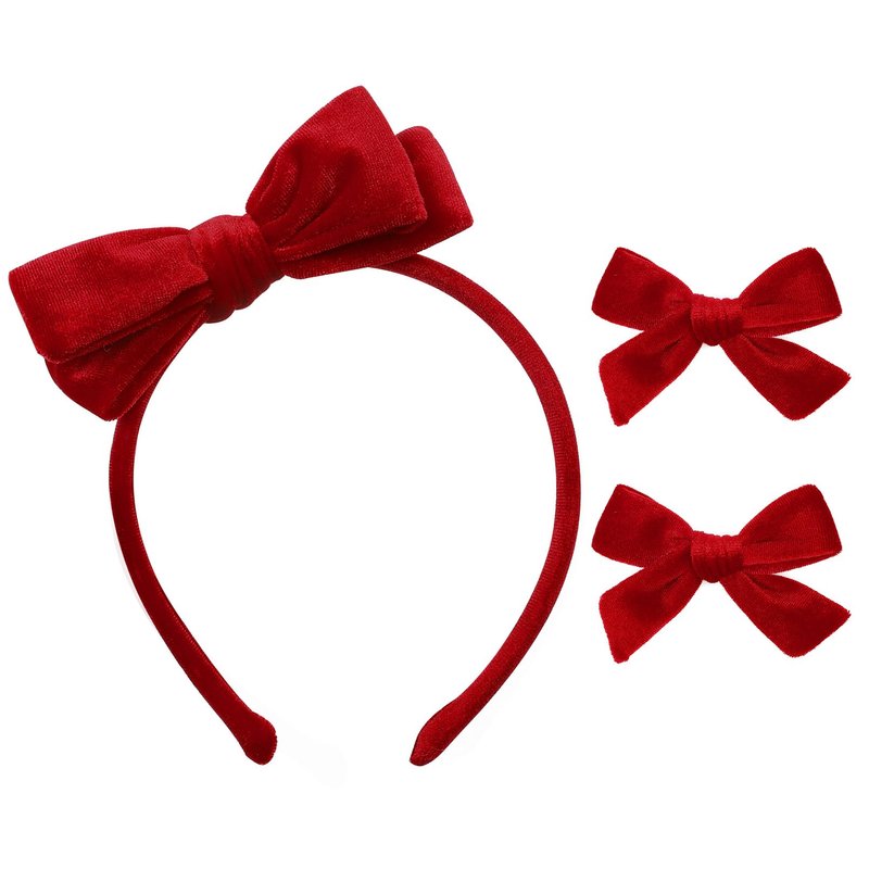 - The set contains 1 velvet bow headband and 2 velvet bow hair clips. You can use them to match various outfits, giving you the opportunity to enjoy 2 different wearing experiences from just one purchase.