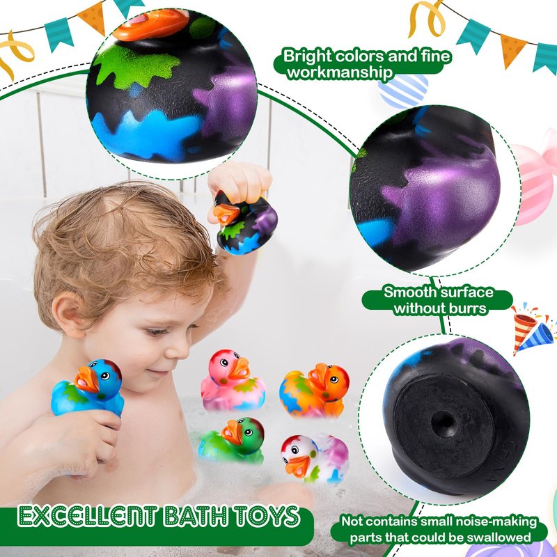 - Exuding Vibrant Hues: embrace aesthetics complemented with colorfulness; Our rubber ducks in splat pattern boast splat patterns, which can largely pique little one's curiosity and interest; This multi hued array of rubber ducks promises to deliver unrivaled visual entertainment for youngsters while enhancing their sensory experiences