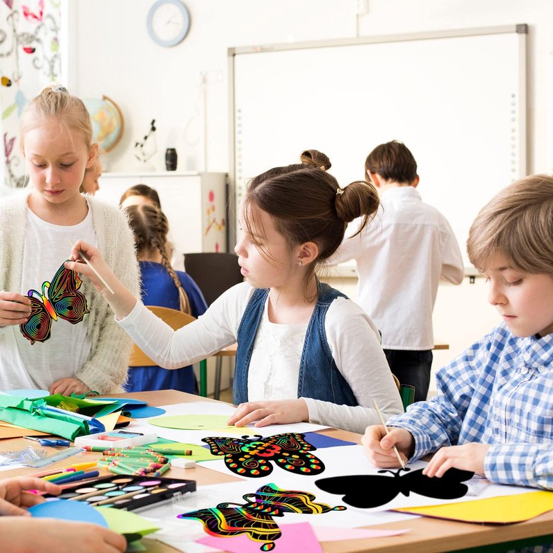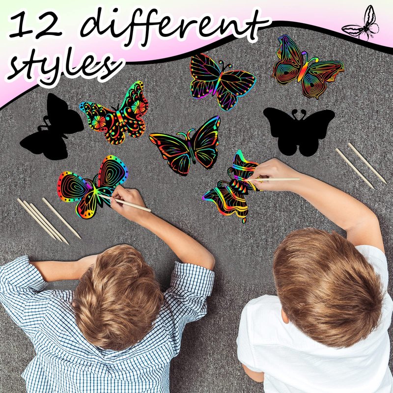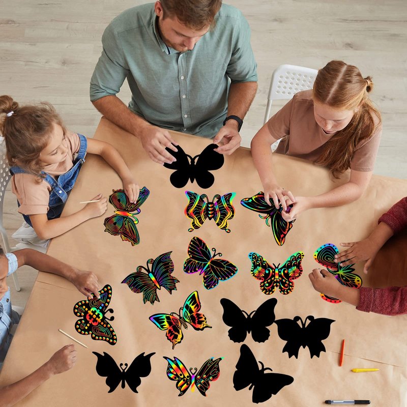 - Decorative But Practical: these butterfly scratch card diy crafts are easy to use, just scrape the black film off the surface with a wooden stick to reveal a lovely rainbow of colors; You can use them to decorate your books or scrapbooks as you like