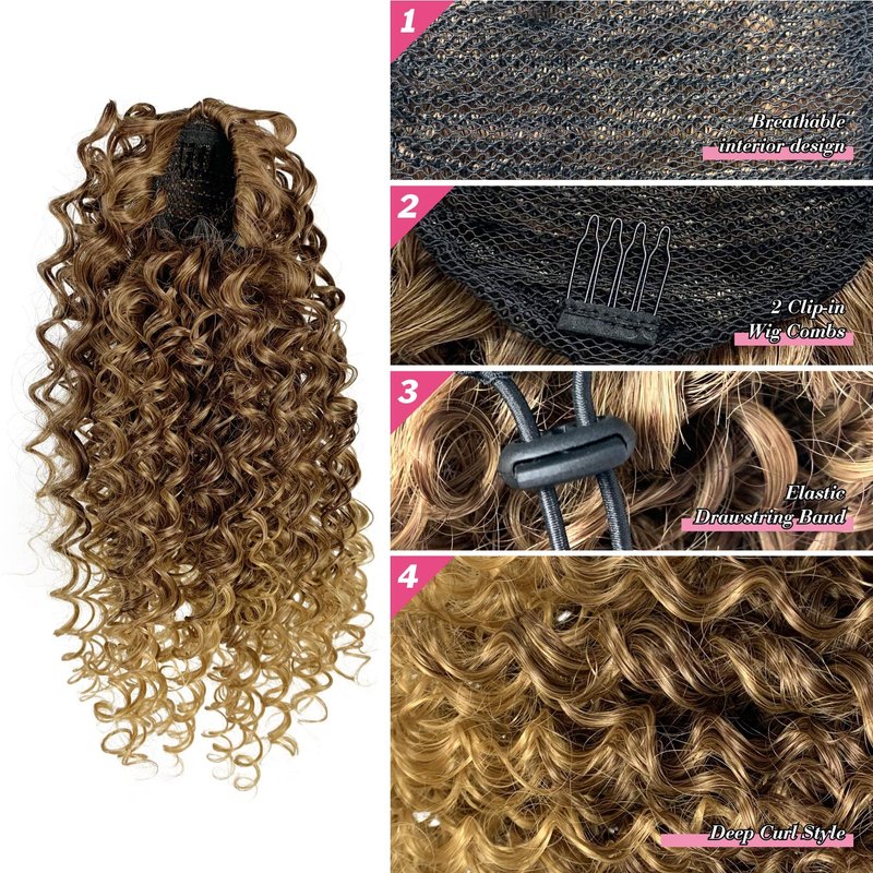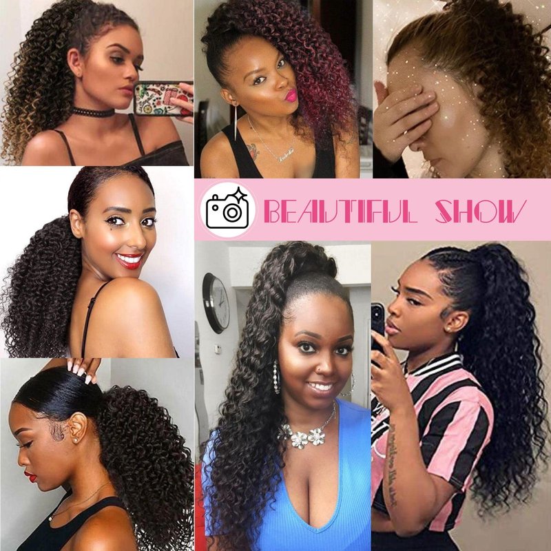 - 【Easy to Wear& Blends Well】:The Deep curly Drawstring Ponytail Extension with clip in hair and machine weft hair tie guaranteeing, it has no damage to your hair and easily to wear and remove. ponytail extension will stay in place for all day long and you don’t have to make adjustments. Just trust it and go to for fun!