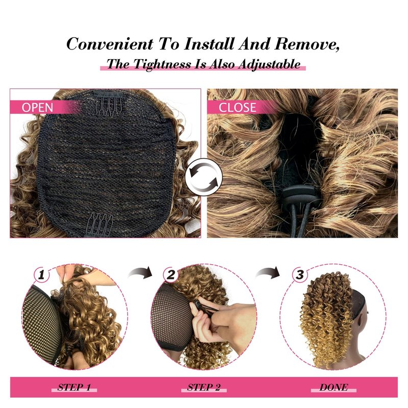 - 【Comfortable】: Curly drawstring ponytail extensions adopt the comfortable and breathable inner net design, and no harass to the skin.The Size is Adjustable with Buckle Drawstring Inside,Fit for Almost People.