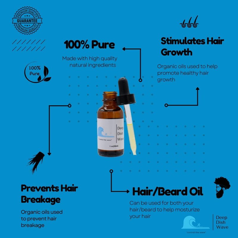 Deep Dish Wave Hair Oil 100% All Pure Natural Organic 360 - Premium Hair Growth Oil & Beard Oil for Men - Waves Training 1oz