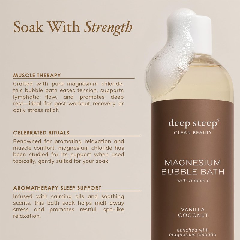 Deep Steep Magnesium Bubble Bath, 15.6 oz – Foaming Soak with Magnesium, Coconut Oil, Aloe, Vitamin C, Shea Butter & Argan Oil – Vegan, Clean Beauty for Stress & Sleep (Brown Sugar Vanilla)