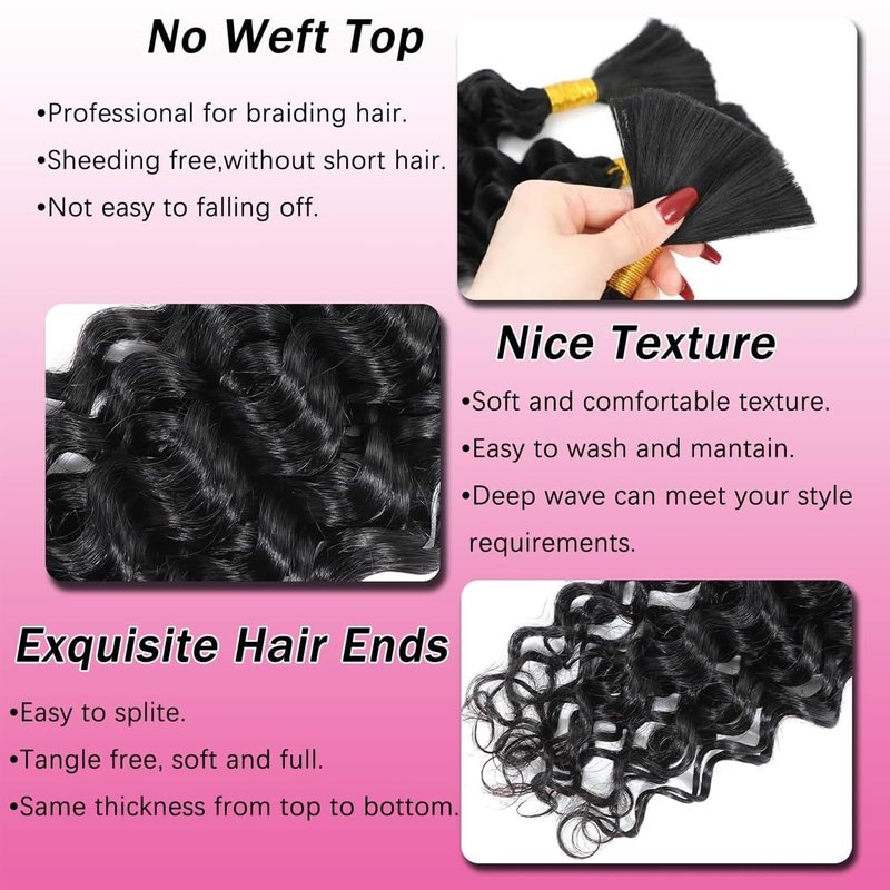 Deep Wave Braiding Hair 2 Bundles 80g Braiding Hair No Weft Bulk for Braiding Hair Extensions Natural Black 18 Inch