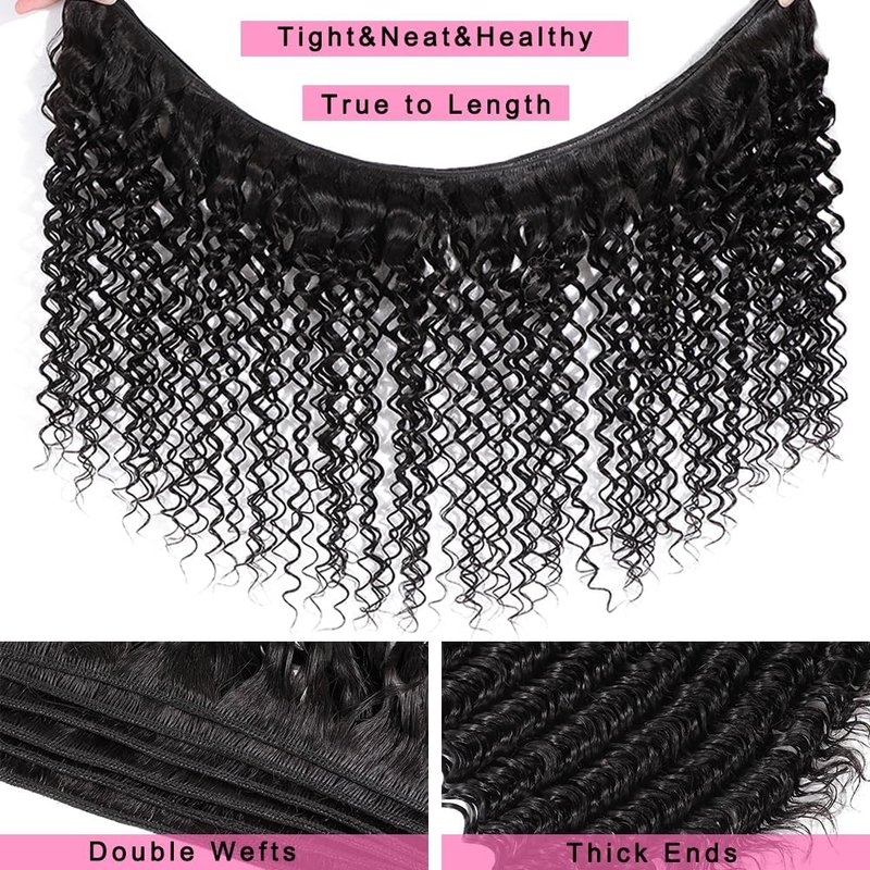 - Human Hair Bundles Hair Feature:Deep Wave Human Hair Bundles Selling by Factory Directly,Beautiful Deep Wave Texture with High Elasticity,Hold Curls Well.Suitable for Daily,Party,Birthday,Wedding,Lazy Girls,As a Gift,Cosplay or Any Other Occasion You Want.