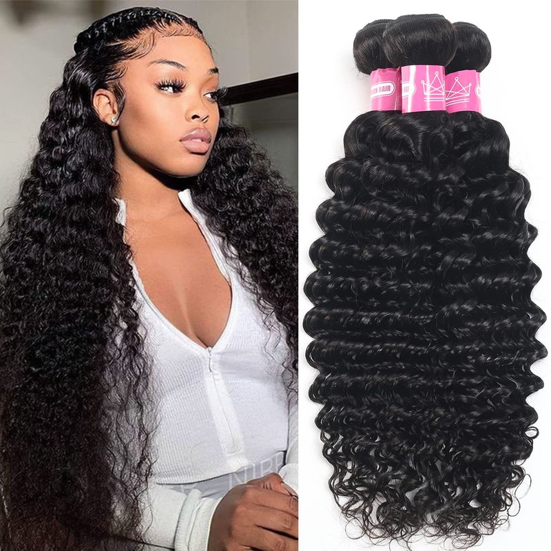- Deep Wave Bundles Hair Color:1B Natural Black Human Hair Bundles,Silky and Shiny,Match Your Hair Perfectly,Deep Wave Virgin Hair Can Be Heated,Curled,Dyed,Bleached,You Can Try Different Hairstyles to Show Your Beauty.