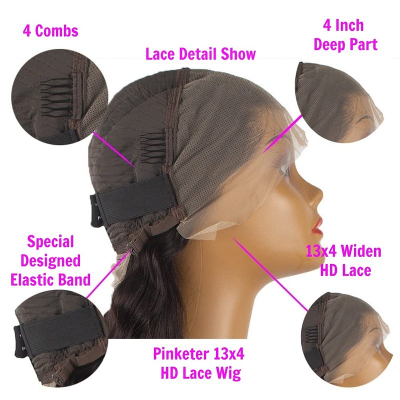 - [ Human Hair Wig Quality ]: 10A Grade 13x4 Lace Front Wigs Human Hair Pre Plucked, Transparent Lace Close All Skin Color, Easy to Work With. 180% Density Deep Wave Lace Front Wigs Human Hair. All Pinketer Wig Made of Virgin Human Hair and Double Weft. No Tangle, No Shedding.