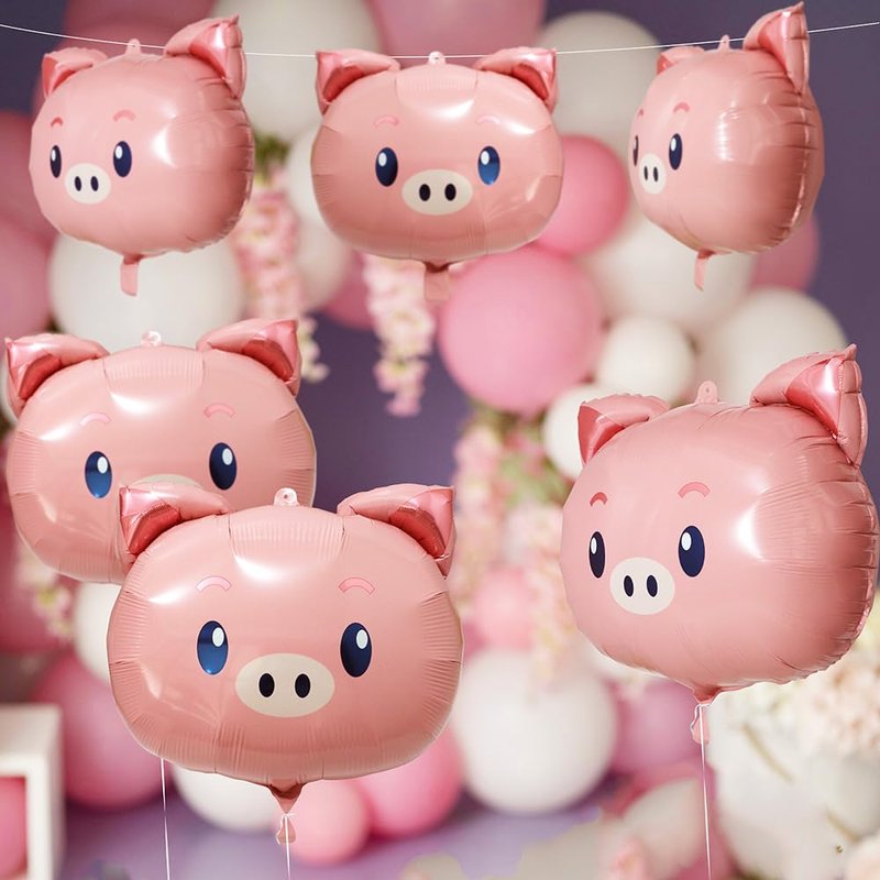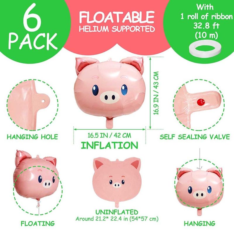 - 【CUTE PINK PIGGY HEAD APPEARANCE】These foil balloons are designed in pig head shape, cute and lovely appearance will make your party more interesting, reusable, bring an unforgettable and impressive experience to you. You will get 6 piece adorable pink pig Foil Balloons (uninflated) + 1pcs Ribbon Roll.