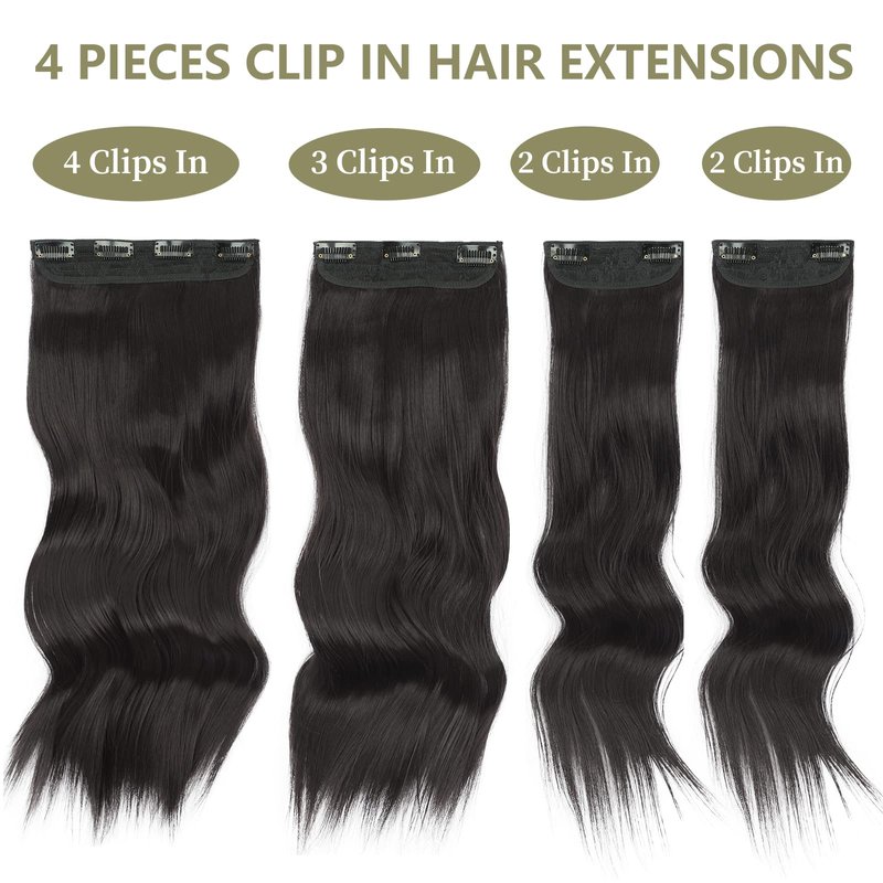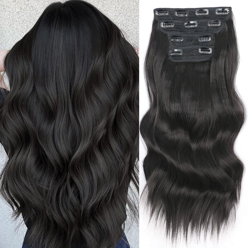 Deethens 4PCS Clip in Beach Wavy Hair Extensions 20 Inches Natural Black Long Synthetic Hairpieces Bouncy Curly Hair Extensions for Women (Natural Black 2#)…