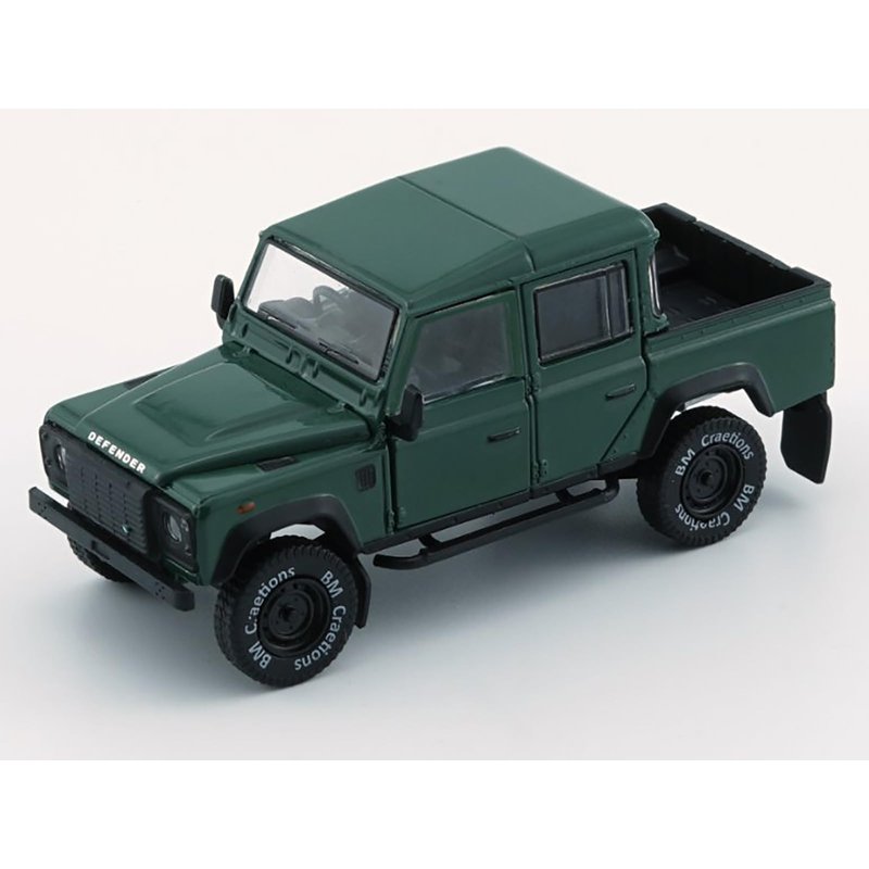 Brand new 1/64 scale diecast car model of Defender 110 Pickup Truck Green with Extra Wheels die cast model car by BM Creations 64B0197