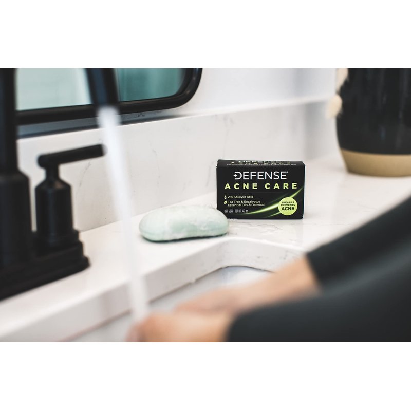 Defense Acne Care Bar Soap 4.2oz | contains 2% Salicylic Acid, Tea Tree & Eucalyptus Essential Oils & Oatmeal (Pack of 2)
