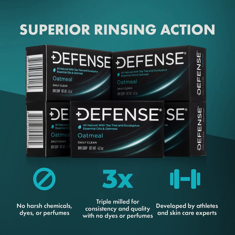 - EXCELLENT EXFOLIANT | The oatmeal in Defense Oatmeal soap contains saponins which are natural cleansing agents. They help remove excess sebum, dirt, dead skin cells, and grime from deep within the skin’s pores.