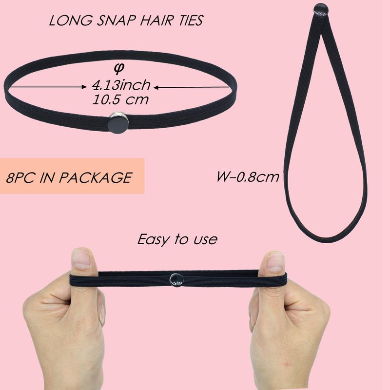 - 🔘 LENGTH AND QUANTITY:PACKAGE:8PCS long Snap Hair Ties LENGTH:6.75INCHES(17CM), It can be suitable for all Hair.
