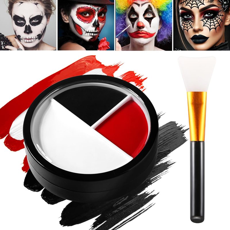 DE'LANCI Black White Red Face Body Paint with Brush, funny Clown Makeup for Halloween Special Effect, Long Lasting Waterproof SFX Makeup Face Painting Kit, Professional Halloween Joker Clown Makeup