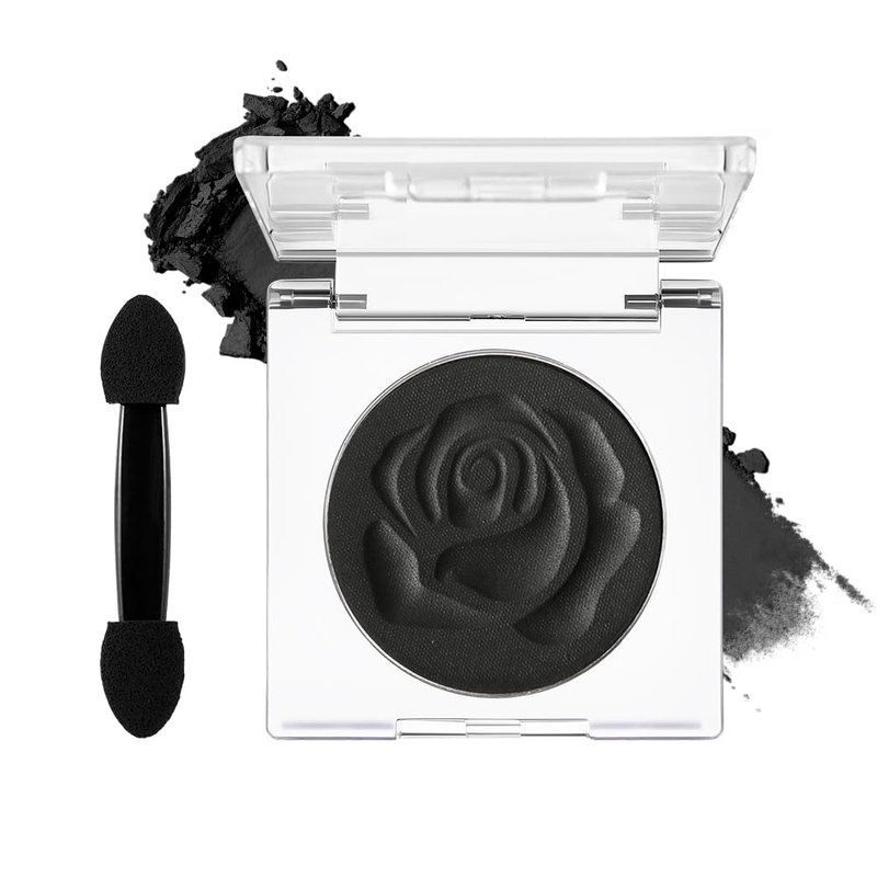 DE'LANCI Single Black Eyeshadow, Matte Eyeshadow Black Eyes Goth Smokey Makeup, Long Lasting Blendable Single Dark Eye Shadow Pallet, for Smoky SFX Halloween Makeup Eyeliner Face Body Paint, #01