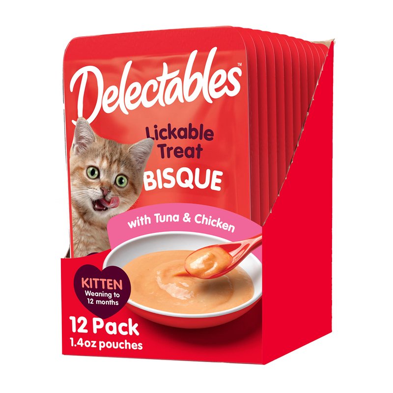 - CONTAINS: This pack of Delectables Bisque contains twelve (12) 1.4-ounce lickable cat treats.