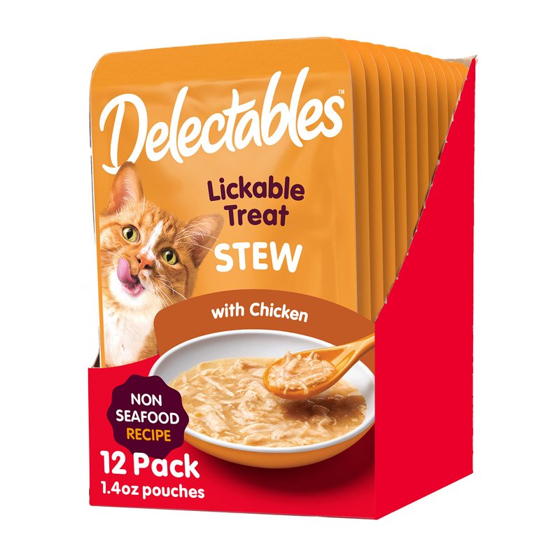 - TRY MORE TEXTURES & FLAVORS: Delectables Non-Seafood Lickable Treats are available in a Stew & Bisque texture with chicken, chicken & veggies, chicken & beef, chicken & cheese and chicken & duck.