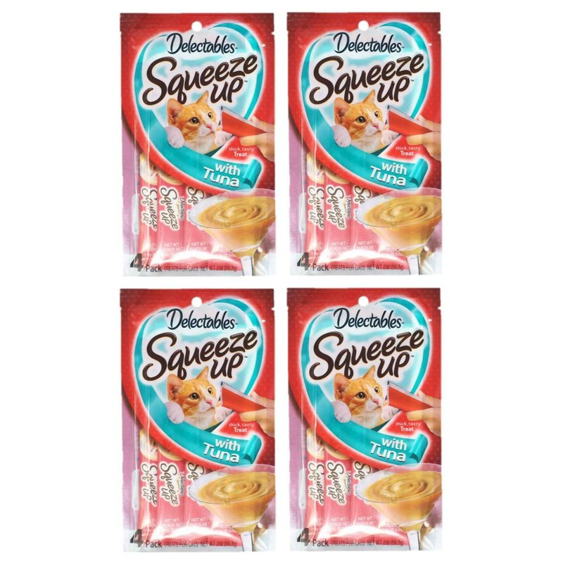 Delectables Squeeze Up Hartz Cat Treats Bundle of 4 Flavor Pouches, 2.0 oz Each (Tuna)