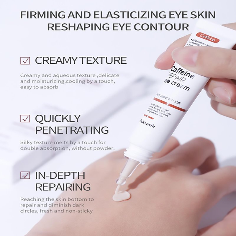 DEleventh Korean Brand Caffeine Repair Eye Cream 20g / Anti-wrinkle, Reduces Puffiness and Dark Circles, Hydrates, Firms Delicate Skin and Smoothes Fine Lines for a Refreshed Look