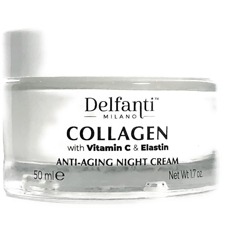 Delfanti-Milano • COLLAGEN with VITAMIN C & ELASTIN • Rejuvenating & Nourishing • Anti-Aging Night Cream • Face and Neck Moisturizer • Made in Italy
