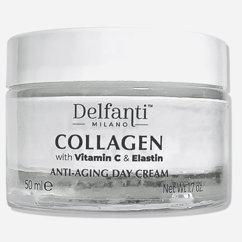 COLLAGEN Anti-aging Day Cream is a powerful combination of COLLAGEN, VITAMIN C and ELASTIN - a triple action to achieve a radiant appearance. Delfanti Milano COLLAGEN VITAMIN C and ELASTIN boosts the powerful actions of Collagen, a natural protein that is the base of skin's tone and smoothness, with natural actives and precious oils. The loss of collagen over the years results in fine lines, wrinkles and sagging skin. TO USE: Apply every morning to a cleansed face and neck, avoiding direct eye contact.