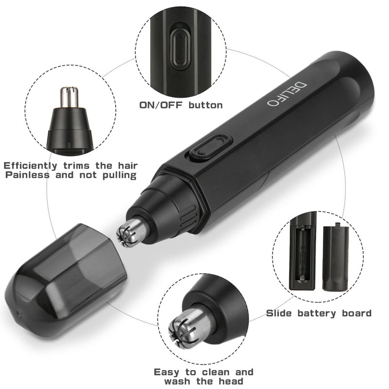 DELIFO Nose Hair Trimmer, Painless Ear and Nose Hair Trimmer for Men Women Cordless Waterproof Nose Hair Remover Dual Edge Blades Easy Cleansing Eyebrow Trimming Tool