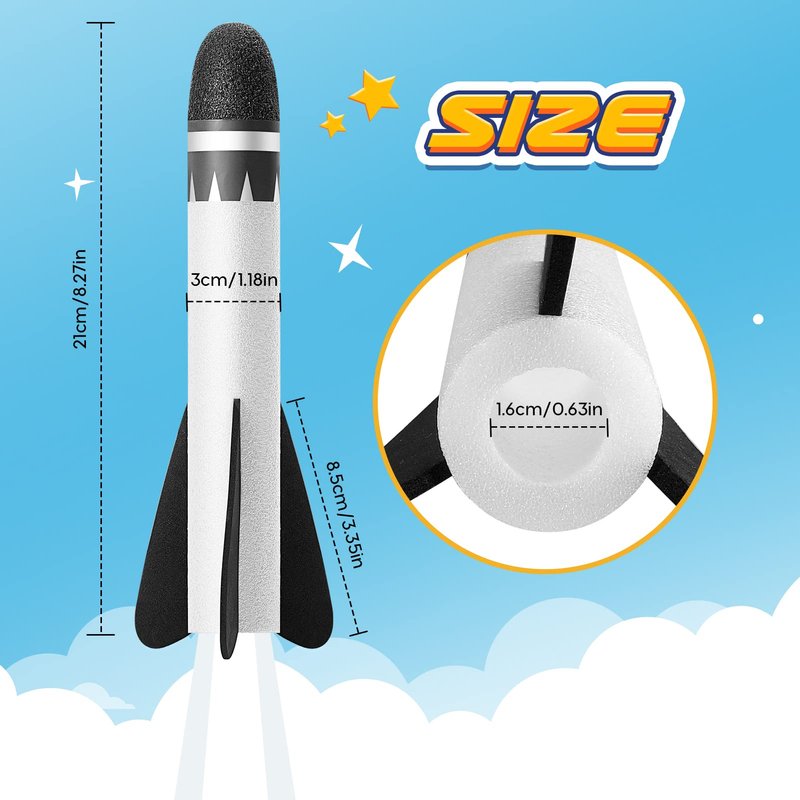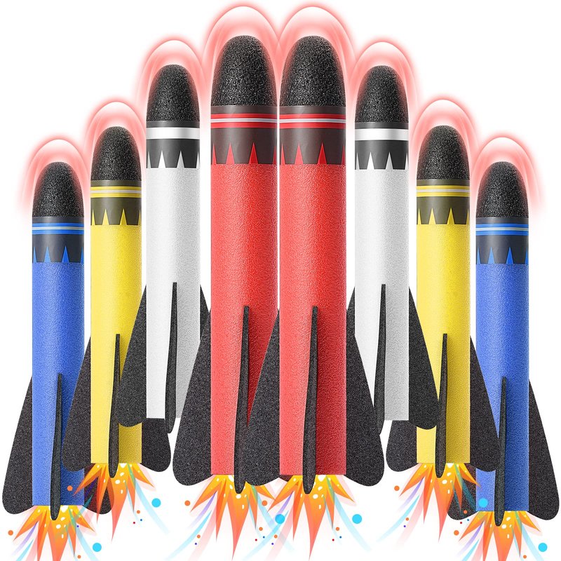 - 【Rocket Refill 8 Pack】Includes 8 soft foam rocket toy(No rocket launcher in the product), the toys rocket refill hollow inner diameter size (1.6cm,5/8"" hole), compatibility with most rocket launchers on the market.