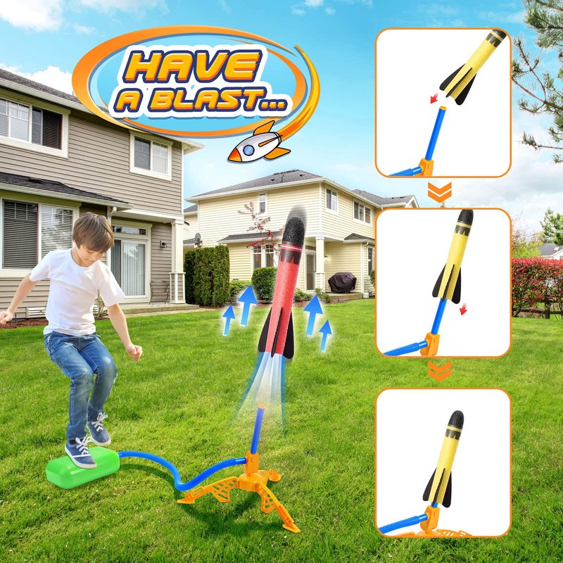- 【Perfect Backup】With the replacement rocket, our child can keep launching if the rocket is lost or damaged! These rocket launcher for kids can be used outdoors, in the garden or in the parks. It can unleash our child's energy and keep them away from screen time and more active outdoors.
