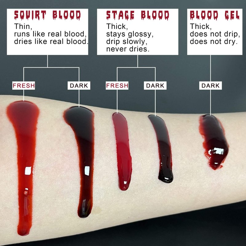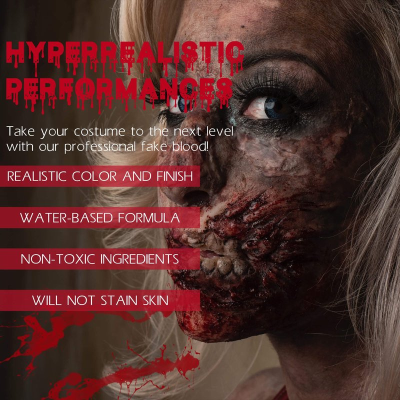 - 【SKIN FRIENDLY & NON-TOXIC MATERIALS】-All the items are made with non-toxic,skin safe ingredients. Fake Bloods are water-based and syrup-based, so it’s as easy to remove as it is to apply, no need to spend hours getting it off. Also both are tried, tested and proven not to stain your skin and washes out easily with soap and water.